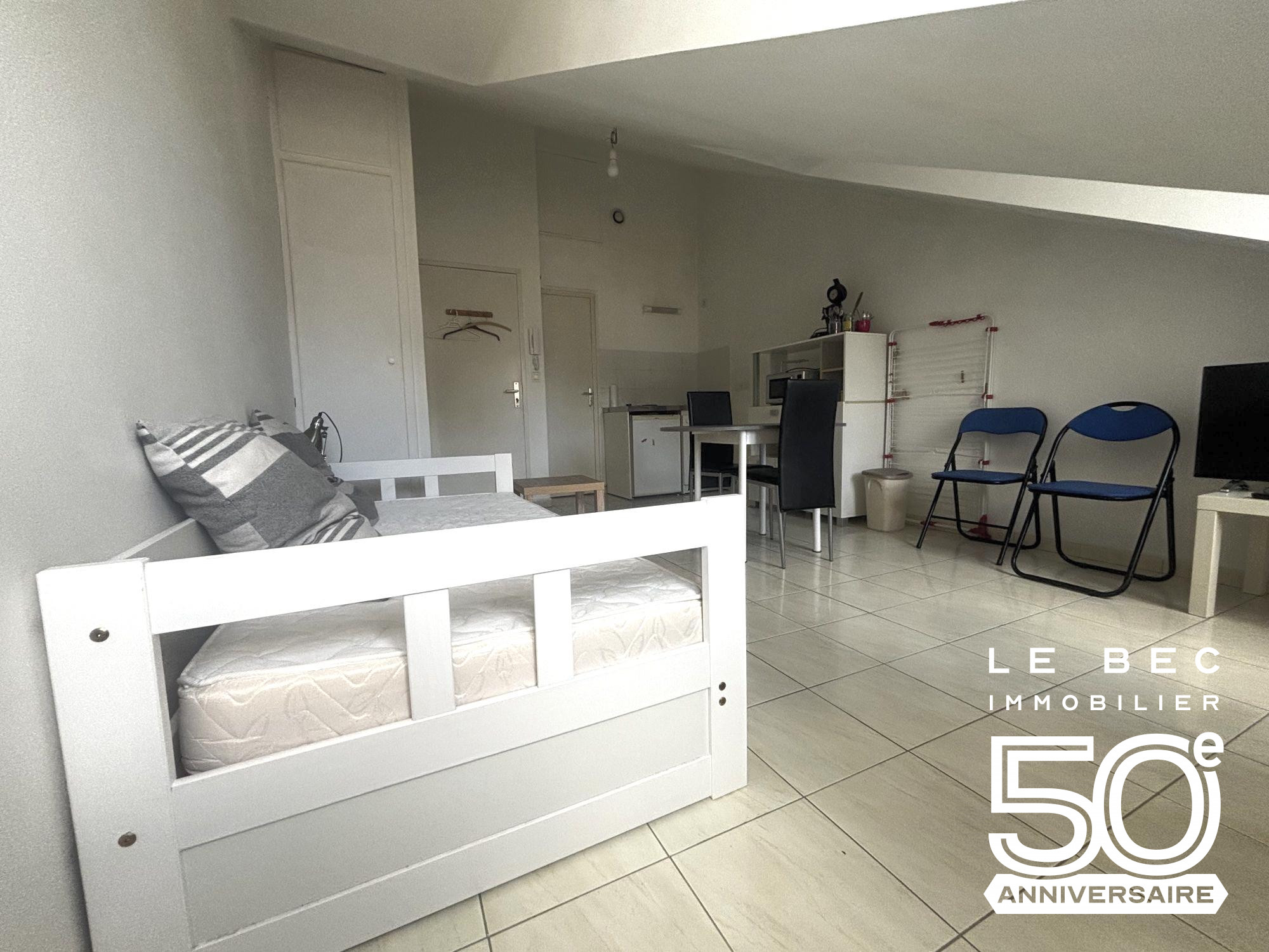 Vannes, centre, studio idéalement situé proche des arrêts de bus et des commerces comprenant une pièce principale avec un coin cuisine, une salle d'eau avec wc. LIBRE