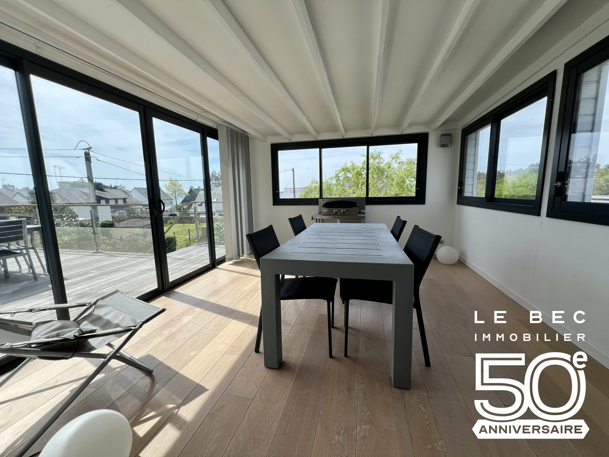 Située à deux pas de la plage de Moustérian à SENE, cette belle maison entièrement rénovée offre des prestations de qualité. Vous découvrirez une vaste pièce de vie de plus de 50 m² prolongée par une véranda ouverte sur une terrasse avec vue mer. La cuisine aménagée et équipée s'intègre parfaitement à cet espace convivial. A l'étage, deux chambres lumineuses, dont une avec balcon et vue mer, ainsi qu'elle salle d'eau. En rez- de jardin, trois chambres décorées avec goût , chacune disposant de sa salle d'eau privative et d'un accès direct au jardin. Un garage pour motos ou vélos est à disposition avec la possibilité de stationner deux véhicules sur le terrain. Un bien rare idéal pour profiter du cadre privilégié du Golfe du Morbihan. Réf VA2604014